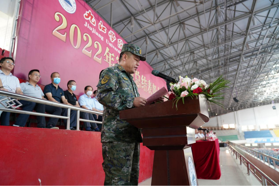 在家校领导魏立平、王万山、陈春生、夏启国、严平、查振华、李广欣、王殿元,武警九江支队参谋长曾勇华出席活动。各二级学院院长、党委书记(副书记),有关职能部门负责人,全体新生班辅导员、班主任,2022级新生代表参加活动。大会分为军训总结表彰大会和开学典礼两个阶段,由副校长王殿元、王万山分别主持。