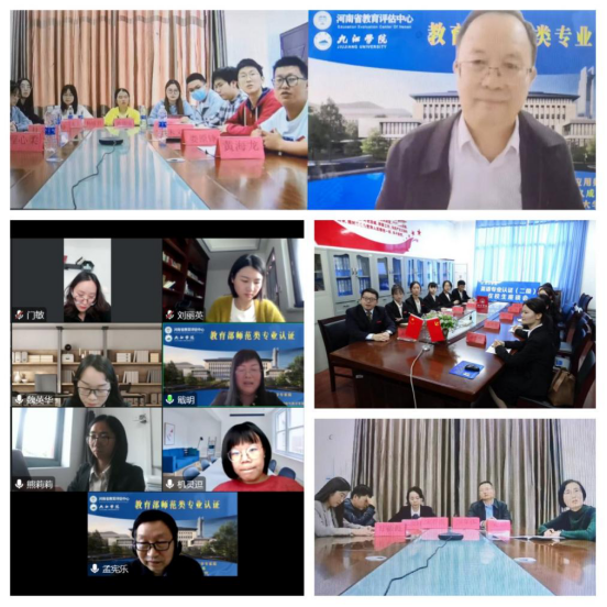 受河南省教育评估中心委派,以华南师范大学王建平教授为组长的联合认证专家组一行16人,从今天起将对我校数学与应用数学、教育技术学、英语3个师范专业以线上形式进行为期2天半的联合认证线上集中考查。10月18日上午,学校在逸夫图书馆报告厅举行了教育部师范类专业第二级认证线上考查专家见面会。江西省教育厅师资处处长陈露、河南省教育评估中心副主任张新民出席会议,学校党委书记赵伟、校长陈小林及全体在家校领导、相关职能部门负责人等参加会议。