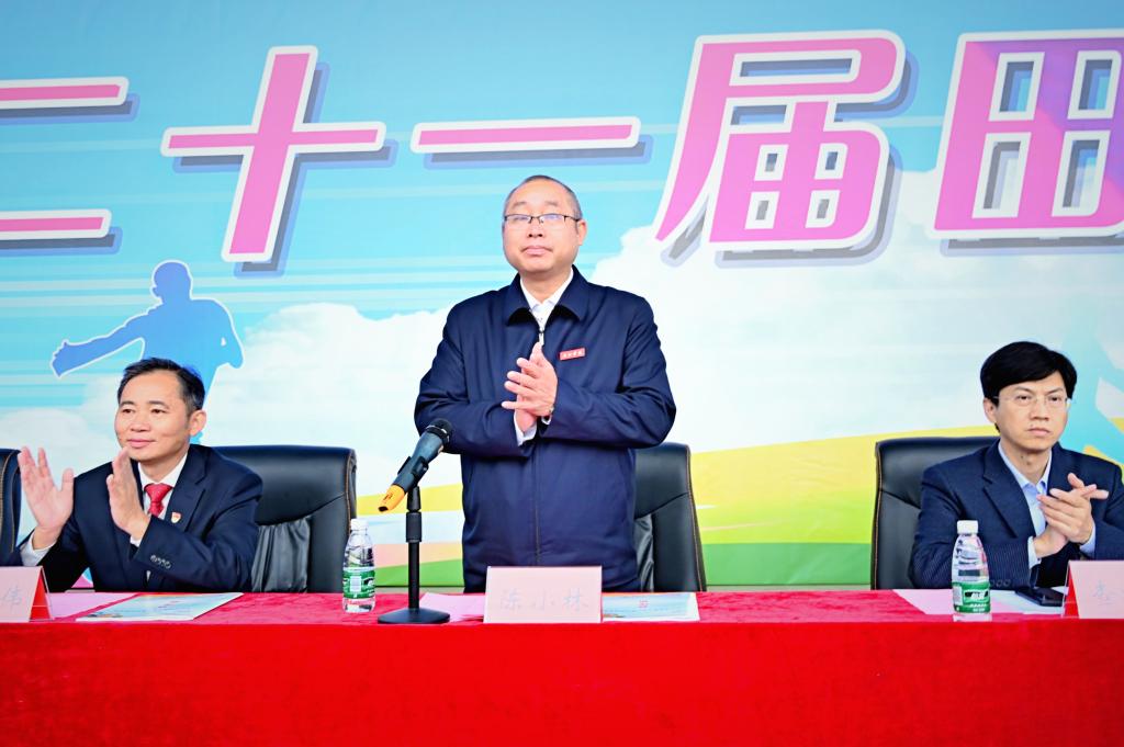 陈小林在致辞时代表学校对本届运动会的顺利召开表示热烈祝贺。他指出,体育强则中国强,国运兴则体育兴。体育承载着国家强盛、民族振兴的梦想,是实现中国梦的重要内容。习近平总书记在党的二十大报告中提出,要“推进健康中国建设”“促进群众体育和竞技体育全面发展,加快建设体育强国”。深入发展体育事业,是学校推进“五育并举”、培养全面发展人才的重要内容。今年以来,学校以迎接第十六届省运会为契机,在新校区高标准建设运动员村,成立了大学生体育俱乐部,组建十四支运动队积极备战,参加省运会高校组部分项目比赛取得了优异成绩。学校将持续深入贯彻习近平总书记关于体育的重要论述,全面落实体育强国和健康中国战略,持续深化体育教育教学改革,广泛开展群众性体育运动,努力开创学校体育事业发展新局面。