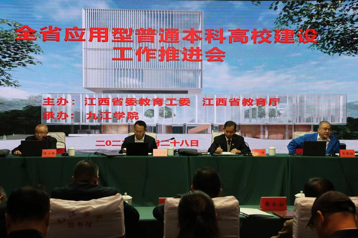 为贯彻落实党的二十大精神,推进应用型高校高质量发展,办好人民满意的教育,10月28日,由江西省委教育工委、江西省教育厅主办,九江学院承办的全省应用型普通本科高校建设工作推进会在九江学院逸夫图书馆报告厅召开。省委教育工委委员、省教育厅副厅长刘小强出席会议并作讲话。九江学院党委书记赵伟,校长陈小林,副校长王万山、王殿元,省内应用型普通本科高校党政领导出席会议。会议由省教育厅高教处处长肖德征主持。