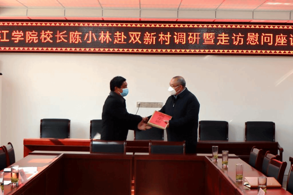 陈小林代表学校慰问了我校两位驻村工作队员,向双新村捐赠了乡村振兴帮扶款。