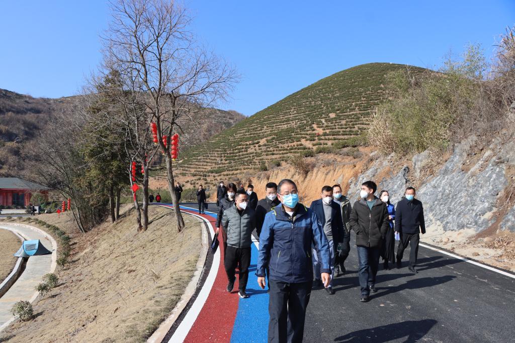 陈小林一行首先来到武宁县鲁溪镇双新村,参观了双新村生态产品价值转化中心、农产品销售直播间、农产品加工厂和茶博园等,详细了解双新村特色农产品的生产、加工和销售情况及农户的就业和增收情况。