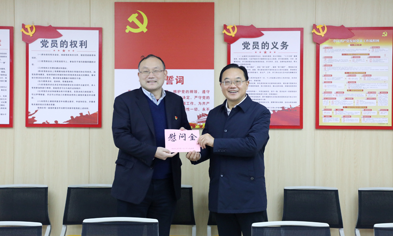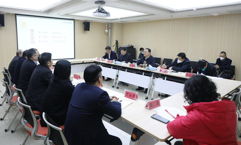 1月12日,副市长杜少华来九江学院附属医院看望慰问联系专家殷小平博士,并调研医院疫情防控工作及江西省脑血管病区域医疗中心项目建设工作。市政府副秘书长黄效兵、市卫健委党委书记宁小球等陪同,附属医院班子成员、相关部门负责人参加会议和汇报工作。