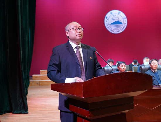 陈小林代表学校向大会作题为《凝心聚力决战申硕攻坚 踔厉奋进加快应用转型 奋力谱写九江学院高质量跨越式发展新篇章》的工作报告。