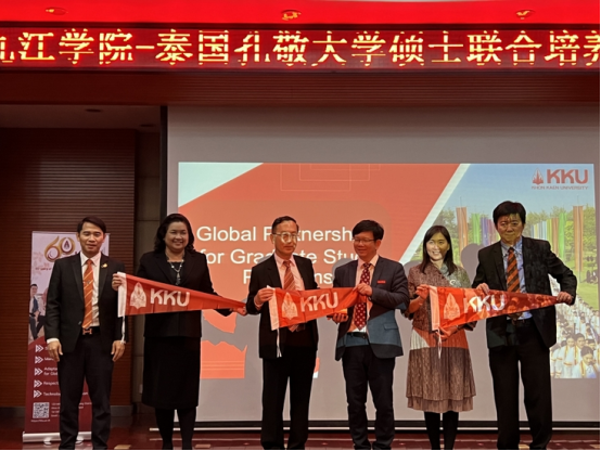 孔敬大学校长Charnchai Panthongviriyakul对九江学院的热情接待表示感谢,他指出,九江学院和孔敬大学自2022年开始合作,很高兴泰国孔敬大学研究生教育中心在九江学院设立,相信这个项目的启动,对两校乃至中泰两国的友好交流有着积极的影响。随后,孔敬大学校长为我校联合培养硕士研究生导师颁发了聘书。