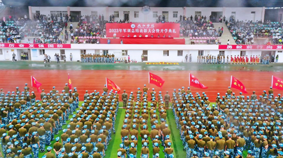 9月23日上午, 九江学院2023年新生军训总结表彰大会暨开学典礼在学校丹枫园南区运动场隆重举行。校党委书记李明斌出席大会,并代表学校向武警九江支队赠送锦旗。校长陈小林致辞,勉励2023级新同学勇担历史重任,锚定奋斗目标,淬炼专注品格。
