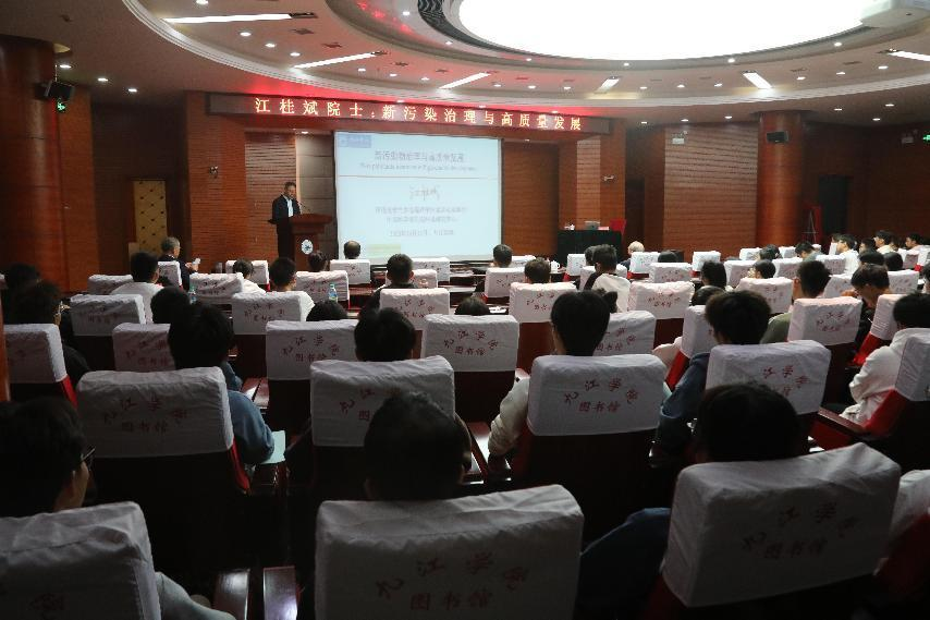 10月12日下午,中国科学院院士、全国政协第十三届人口资源环境委员会副主任、环境化学与生态毒理学国家重点实验室主任江桂斌教授应邀做客九江学院鄱阳湖大课堂第五讲。校长陈小林出席活动,副校长严平主持讲座。