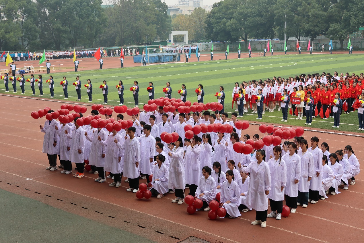 伴随着《运动员进行曲》铿锵有力的歌声,国旗、校旗、运动员会旗和会徽,以及鲜花队、彩旗队、各二级学院和教职工运动员组成的21个方阵队依次经过主席台。