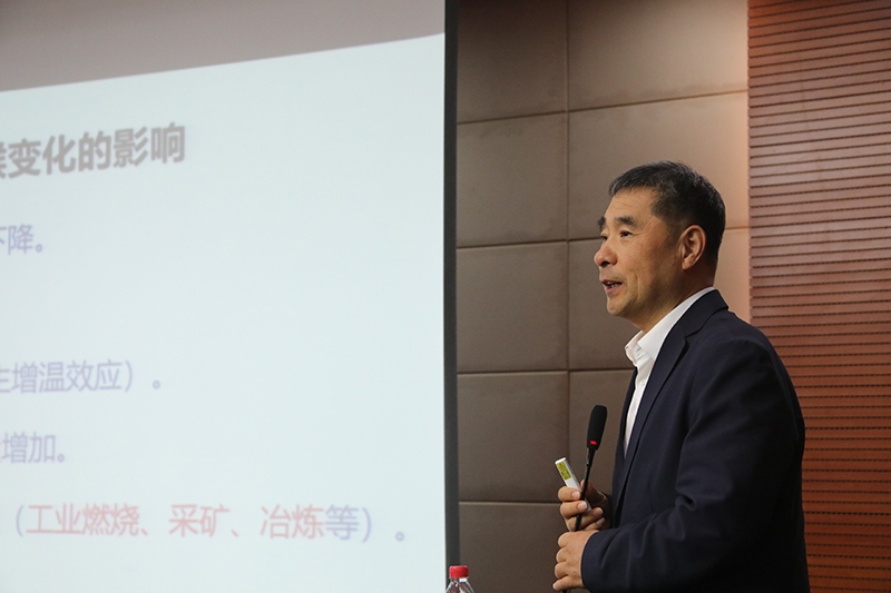 在逸夫图书馆报告厅,马军院士作了题为《基于新质生产力的长江流域城乡绿色低碳发展思考与技术进展》的报告。他深入探讨了碳中和愿景下长江流域城乡发展所面临的挑战,并重点阐述了长江流域城乡绿色低碳生态环境构建思考以及绿色低碳技术研究的最新进展。