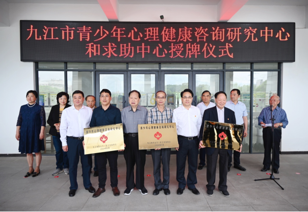 九江学院党委书记李明斌、九江市关工委主任史之汉、市政府副秘书长方忠生分别为九江学院、陈忠“五老”工作室和九江职业大学的青少年心理健康咨询研究中心和求助中心进行了授牌。