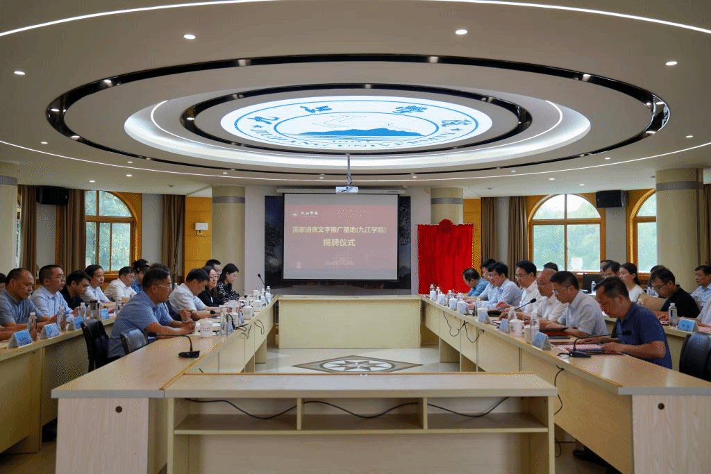 5月24日,国家语言文字推广基地(九江学院)揭牌仪式暨语言文字工作创新研讨会在九江学院丹枫园举行。江西省教育厅二级巡视员李伟,九江学院党委书记李明斌,党委副书记、校长、国家语言文字推广基地(九江学院)主任陈小林,副校长王万山、严平,副校长、国家语言文字推广基地(九江学院)副主任李松志,江西省教育厅语言文字工作与教材处处长、省语言文字工作委员会办公室主任张婵,教育部语言文字应用研究所郭龙生研究员,同济大学国际文化交流学院院长、国家语言文字推广基地(同济大学)常务副主任孙宜学教授,湖南大学中国语言文学学院学科带头人、国家语言文字推广基地(湖南大学)首席专家刘文正教授,江西省语言学会会长、国家语言文字推广基地(江西师范大学)副主任刘楚群教授,江西省语言学会副会长、国家语言文字推广基地(南昌大学)副主任付欣晴教授出席揭牌仪式和语言文字工作创新研讨会,九江学院相关部门负责人及师生代表等参加活动。李松志主持揭牌仪式。
