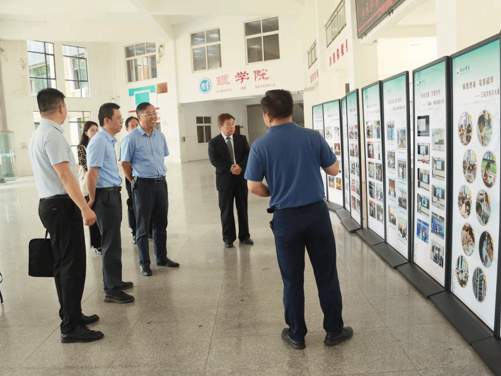 揭牌仪式结束后,与会领导与专家到九江学院语委、普通话测试站、基地办公室、两南山等地考察了九江学院语言文字工作教育教学基地和相关成果。