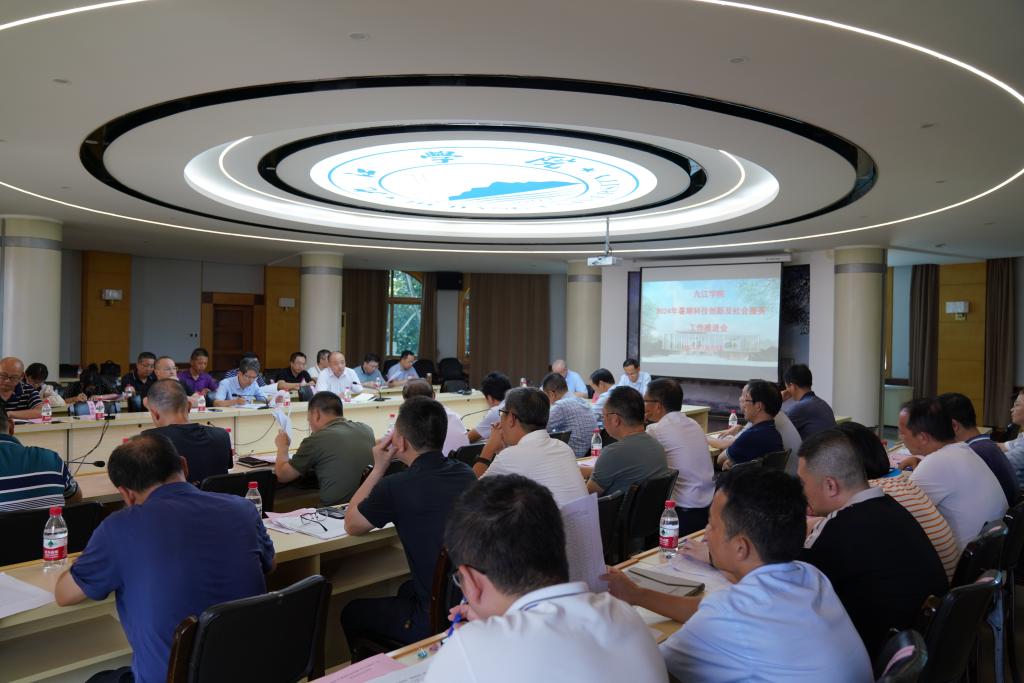 科研处负责人通报了学校上半年科研及社会服务工作进展情况,对暑期社会服务工作计划进行了解读,并对支持科研团队建设提出了建议。各二级学院负责人就暑期科技创新和社会服务工作作了交流发言。
