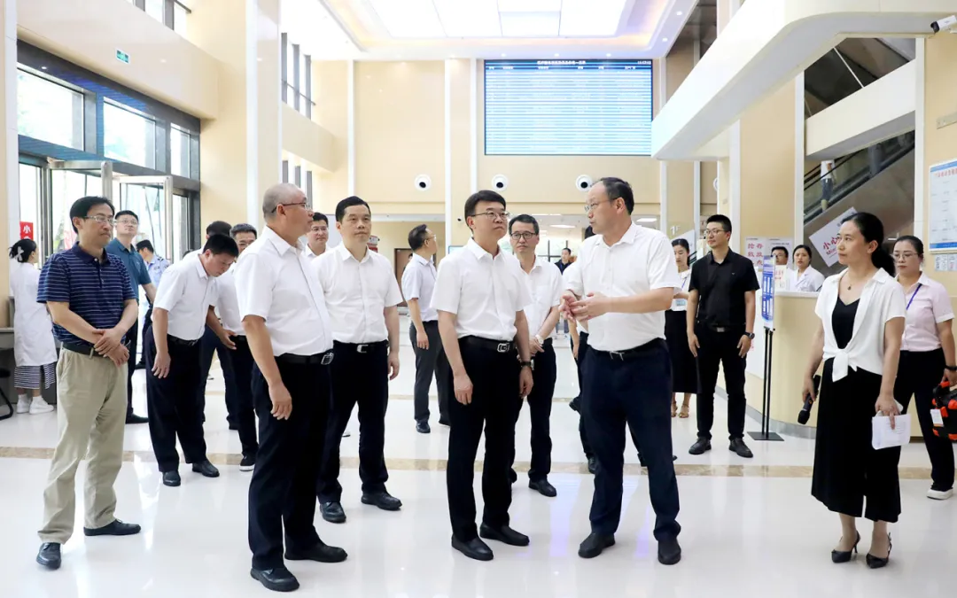 7月24日上午,省政府副省长史可到九江学院附属医院调研指导工作。省政府副秘书长王海涛,省医疗保障局党组书记、局长蔡晓季,省政府办公厅二级巡视员马景高,九江市政府副市长马海威,九江学院校长陈小林、副校长雷志强,市政府副秘书长邓丽娜,市医疗保障局局长唐建宇等陪同调研,九江学院附属医院在家班子成员汇报医院发展和省级区域医疗中心运营等情况。