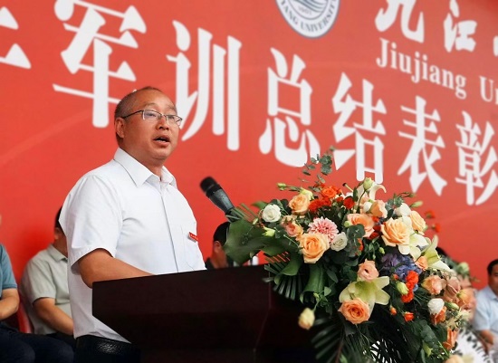 校长陈小林在典礼上致辞,代表全校师生员工向全体教官表示衷心感谢,向2024级新同学表示热烈欢迎。他指出,九江学院地理位置优越,位处庐山之麓、长江之滨、鄱湖之畔,传承千年文脉与百年办学历史。近年来,学校围绕建设特色鲜明高水平应用型大学办学目标,积极推进内涵式特色化发展,人才培养质量和社会服务能力显著提升,办学层次迈上新台阶。即将隆重召开的学校第二次党代会,全面擘画建设特色鲜明高水平应用型大学的美好蓝图,将为同学们搭建学习成才的更好更大舞台。