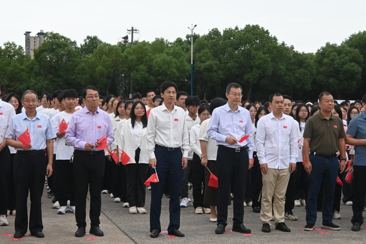 查振华在讲话中表示,五星红旗在我们眼前冉冉升起,它不仅见证了新中国从“站起来、富起来到强起来”的伟大飞跃,也激励着九院师生不忘初心,砥砺前行。在这个喜庆而又庄严的时刻,全校师生和亿万中华儿女同为新时代伟大祖国的发展感到无比自豪,也为我校胜利召开第二次党代会,改革发展迈上新征程而深受鼓舞。
