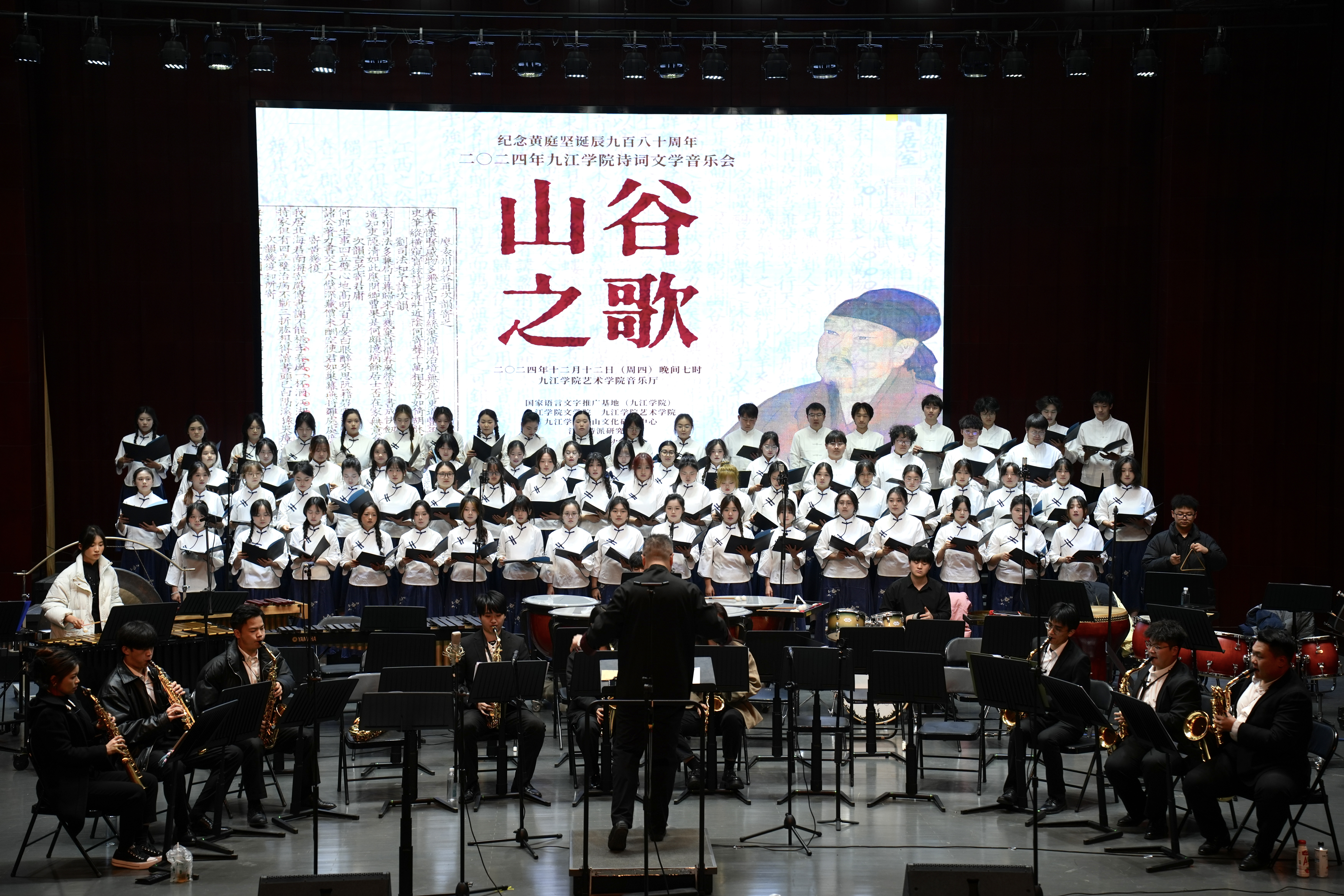 为弘扬以江西诗派为代表的中华优秀传统文化,12月12日晚,由国家语言文字推广基地(九江学院)指导,九江学院文学院、艺术学院、江西诗派研究院联合主办的“山谷之歌”文学音乐会成功举行。