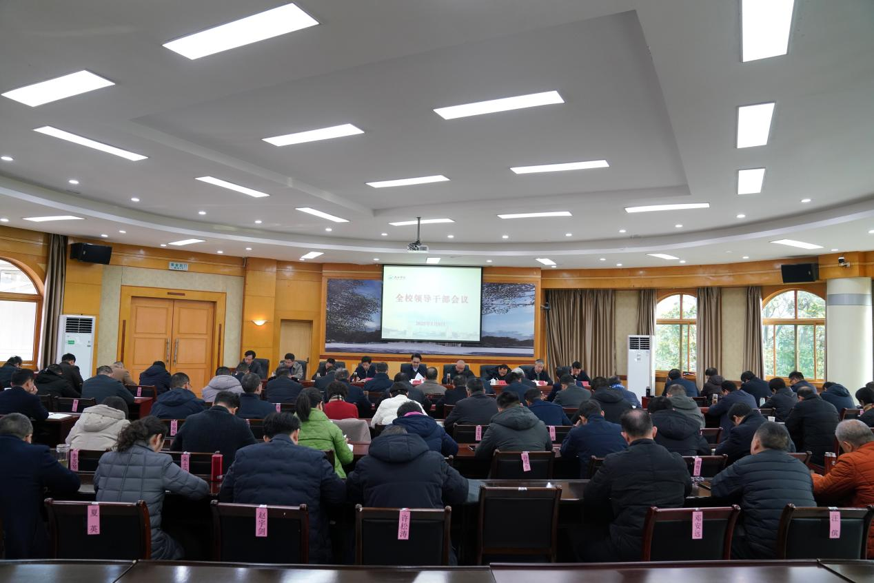 1月8日上午,学校在行政楼四号会议室召开期末领导干部会议,总结全年工作,部署寒假及新学期相关工作。校党委书记李明斌出席会议并讲话,校长陈小林部署有关工作,副校长查振华、王殿元、李松志、鲁卫东、雷志强,纪委书记刘波,副校长吴维勇,党委委员刘遵海、刘平、杨杰出席会议。