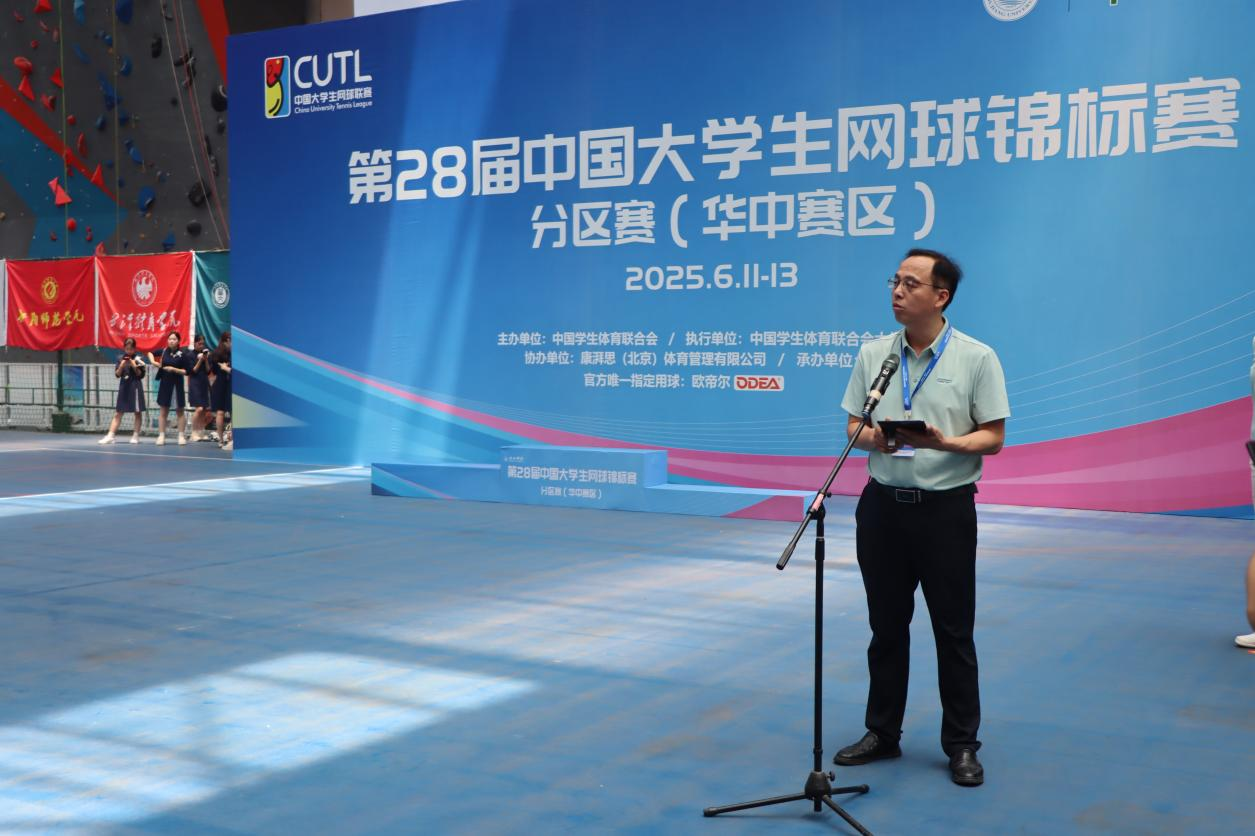 大学网球分会华中赛区仲裁阳艺武宣布比赛闭幕