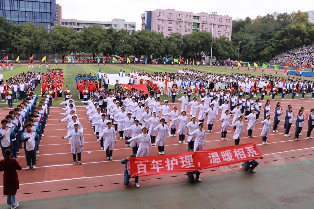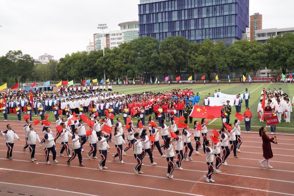 在雄壮激昂的乐曲声中,国旗护卫队、鲜花方队、彩旗方队、裁判员方队、各二级学院方队以及研究生方队、教职工方队依次入场。他们以整齐的步伐、昂扬的姿态走过主席台前,充分展现出九江学院师生的活力与风采,二级学院各具特色的精彩亮相也引起了全场观众的热烈反响,场上的掌声与喝彩声连绵不绝。