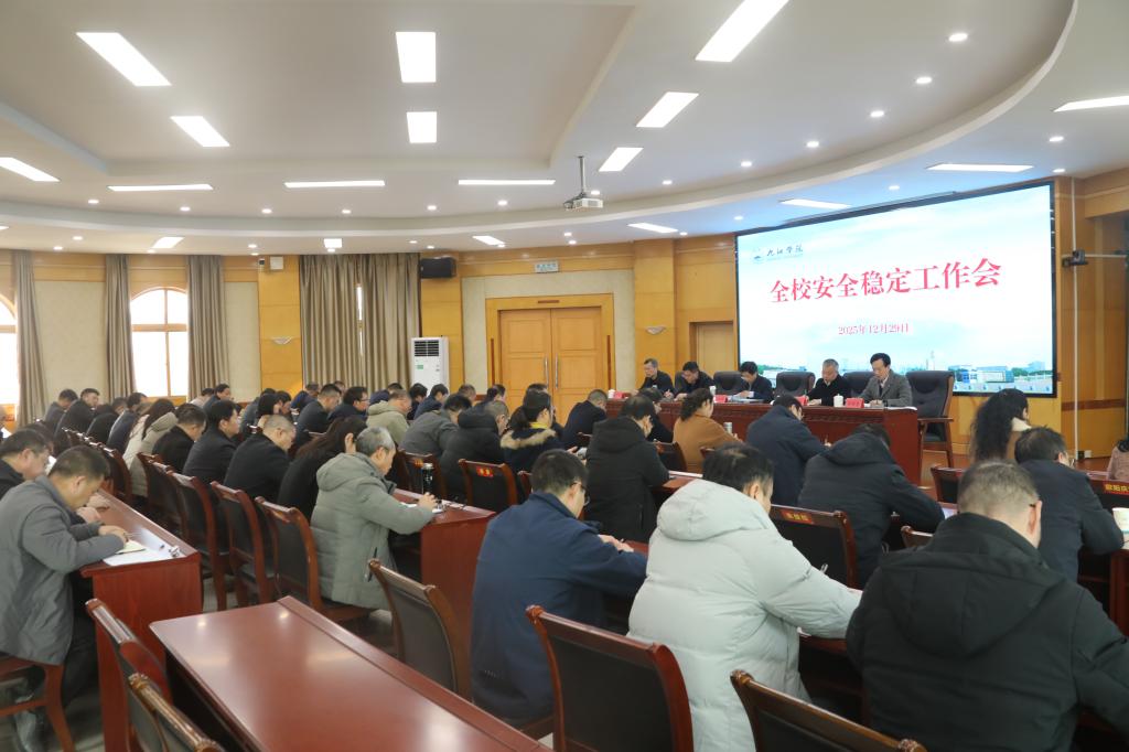 吴维勇分析了我校当前安全稳定形势,并对下一阶段重点工作作出部署。他强调,要坚决扛起政治责任,充分认识安全稳定工作的极端重要性,以“时时放心不下”的责任感守牢安全底线;要迅即开展拉网式排查,对校园各领域、各环节风险隐患进行全面梳理,确保不留死角、不存盲区;要扎实推进精准化整改,对排查出的问题建立台账、明确时限、责任到人,确保整改彻底到位;要全面加强宣传教育,多渠道、多形式提升师生安全意识和自我防护能力;要着力健全长效机制,不断完善制度体系,强化日常监管,推动安全工作常态化、规范化;要严格执行值班值守,确保信息畅通、响应迅速、处置有力,坚决贯彻落实省委、省政府决策部署,全力抓好岁末年初安全稳定各项工作。