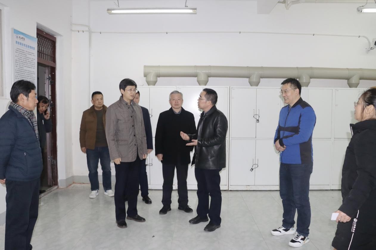 在化学化工学院实验室,检查组实地查看了一楼监控室、纯水制备室、“能源再生循环”校企联合实验室及试剂仓库等重点区域,详细查阅了学院实验室安全应急预案、安全培训记录及日常管理台账,并就相关制度执行情况与管理人员进行了深入交流。