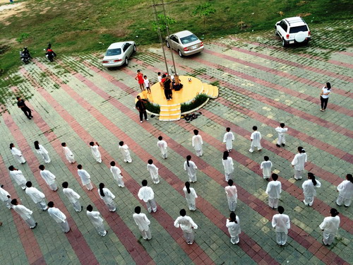 4月24日,柬埔寨 新年假期后的第一个周五, 柬埔寨王家研究院孔子学院按预定的工作计划启动“每周中国文化活动”。孔子学院院长谢莫尼勒(Chea Munyrith)、中方院长帅式毅、汉语教师志愿者及孔子学院学员100余人参加了启动仪式。