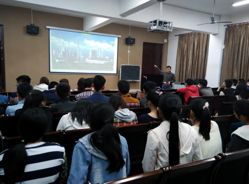见习前,学院于4月24日晚邀请了九江天赐高新材料有限公司安环部经理欧阳天庆进行化工安全生产知识讲座。欧阳天庆工程师讲解了厂级、车间、班级的三级安全教育,重点介绍了学生在生产见习过程中需注意的安全事项。使同学们对即将进行的生产见习要注意的安全事项有了初步的认识。