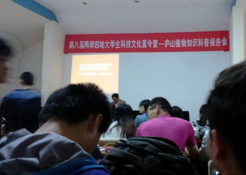 一般三十人左右一个小组,分别由植物学专业老师带领,认识庐山各种植物。为了安全管理,一般每个班还安排班主任或辅导员跟随。庐山由于山地自然条件的复杂性,许多植物比平原更有条件保存下来,为保存古老类型如鹅掌楸、擦木、大血藤、紫树等提供了有利条件。一出门,到处都是植物,带队专业老师随手指一棵植物就开始滔滔不绝地给同学们介绍起来了,“这是羊蹄,廖科,它啊,可以治疗便秘啊,跌打扭伤;这是牯岭牯凤仙花可以止痛,肚痛啊,牙龈溃烂啊……”同学都争相围着老师,希望能多学到一些知识。
