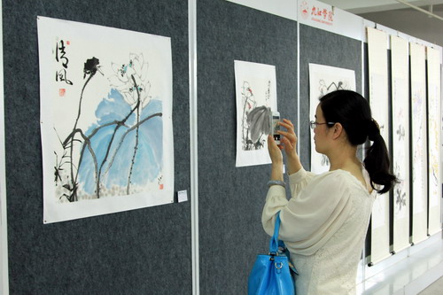 王春生书记在讲话中高度评价了“你好 · 123”六人作品展的主办者,他们自进校以来执着追求着绘画艺术,这次展出的70余幅,涉及油画、国画、素描等画种,题材广泛,风格多样。这是艺术学院以寝室为单位举办画展的第一次,展示了我们学院的寝室文化氛围,我们同学执着学习的精神。