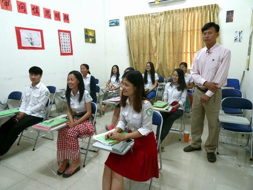 7月10日,柬埔寨王家研究院孔子学院汉语志愿者教师柬埔寨语培训班结业考试在孔子学院大楼教室正式开始。