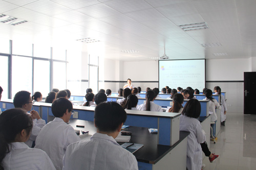 检验科何巍巍老师分理论教学和实验示范两部分,详细讲解了“活化部分凝血活酶时间测定”和“血浆凝血酶原时间测定”两个实验。何老师准备充分,条理清晰,深入浅出地进行授课,风趣幽默的语言吸引同学们聚精会神听讲,积极互动,课堂纪律良好。胡副院长对同学的实验操作进行指导,激发同学们的发散性思维,并亲切询问同学们在焕然一新的实验室的听课感受。同学们高兴地说,感觉很好,教室亮堂、宽敞,实验设备齐全。