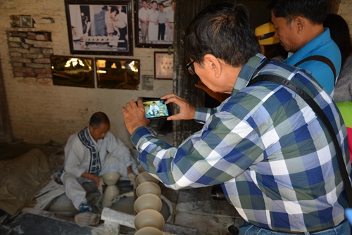 9月17日上午,校董们来到了山青水秀的“景德镇陶瓷美术研修苑”。在古陶瓷工艺再现与修复研究室内,校董们看到各个工作桌上摆满了各式各样制作完成的陶艺坯品,颇有兴致的攀谈起来。随后,校董们乘车来到景德镇古窑陶瓷博物馆,博物馆内一群非物质文化继承者的老人娴熟的拉胚、画胚制作瓷器,让众人叹为观止。下午,各国校董在九江学院展开了华文教育座谈会。座谈会上,大家相互对各校的办学理念、办学思路、办学举措进行了友好交流,并希望学校经常互动,共同传承中华文化。
