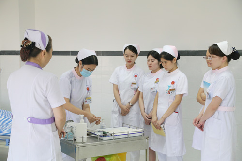 护理部蒋群、谢卫老师为大家讲授了密闭式输液技术、输液泵使用技术、微量泵使用技术等临床常用的护理技术操作,学员们都精神饱满认真听讲并在指导下进行练习。