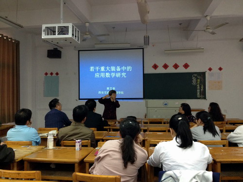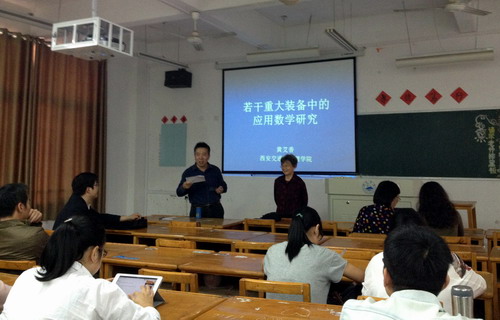 10月21日下午,西安交通大学博士生导师黄艾香教授应邀在文友楼314教室作了题为《若干重大装备中的应用数学研究》的学术报告。理学院30余名教师听取了本次报告。报告会由理学院院长周金贵主持。