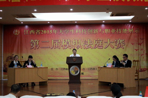 11月6日至8日,江西省高校第二届“模拟法庭”大赛在江西理工大学(赣州市)举行。此次大赛由江西省教育厅主办,江西省高等院校科技开发办公室与江西理工大学承办,江西省18支高校法学院(系)代表队参加了此次比赛,我校政法学院代表队也应邀参赛,政法学院党委书记高翔率领指导老师与参赛学生参加了此次比赛。