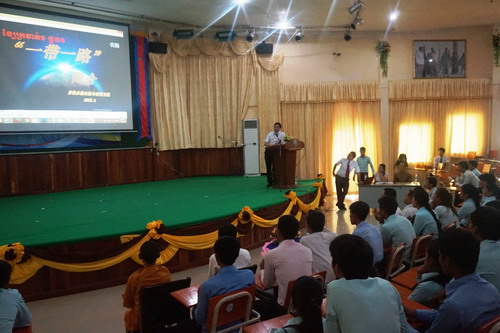 柬埔寨王家研究院孔子学院院长谢莫尼勒阁下(H.E. Chea Munyrith)莅临棉芷大学,宣讲“一带一路”构想丰富的内涵和远大前景。他提到,柬中友谊源远流长,近年来两国全面战略合作伙伴关系不断巩固深化,尤其是在习近平主席倡导的一带一路战略框架背景下,中柬贸易、旅游等方面交流需求也与日俱增。学好汉语、了解中国文化,有利于柬埔寨人民特别是青年一代的就业和发展。
