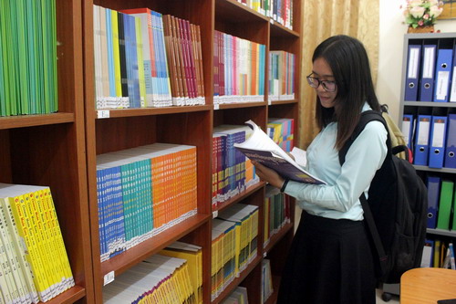 柬埔寨王家研究院孔子学院图书馆向学生开放借书