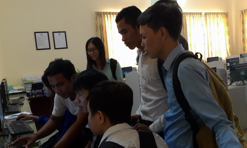 在参观图书馆过程中,馆内书桌上的标语吸引了同学们的注意。许梦琳老师向学生们介绍了标语“为柬埔寨之崛起而读书”、“问渠那得清如许,为有源头活水来”和“为天地立心,为生民立命,为往圣继绝学,为万世开太平”的蕴含的深刻意义,激励了同学们奋发向上,学好汉语,学好科学文化知识。图书馆的全面开放和电子图书馆的开放使用为学生提高汉语水平、了解中国文化和开拓知识视野提供了新的平台,也提高了学生们借阅图书,拓展知识和学习汉语的积极性。