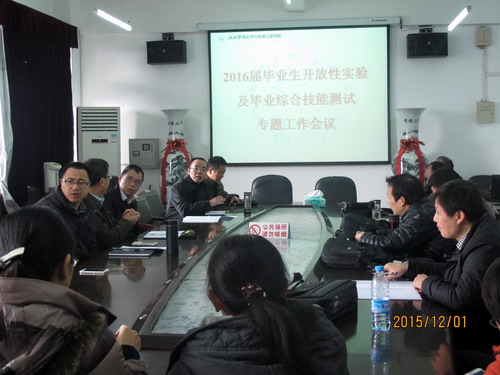 为了进一步深化教学改革,加强实践教学,锻炼和培养学生的实践动手能力,12月1日上午,化环学院在向学楼五楼会议室召开2016届毕业生开放性实验及综合技能测试专题工作会议,学院院长严平、副院长曹小华、各专业负责人、技能考核小组、实验室管理办公室和教研科参加了此次会议。