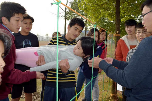 12月29日下午,九江学院野外生存队的教师在学校的拓展训练基地和海外华裔青少年“中国寻根之旅”冬令营营员们共同展开了一次别开生面的野外生存实践活动。体育学院杨勤、占玉珍、吕冬生、王利锋等教师指导了此次实践活动。