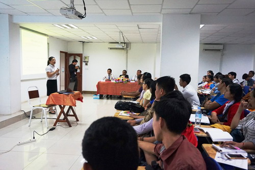 2月24日,柬埔寨王家研究院孔子学院在金边亚欧大学举行汉语水平考试(HSK)暨留学中国说明会。孔子学院中方院长帅式毅,亚欧大学副校长孙色塔(SUN setha)、语言学院院长萨索皮(SAM Sophy)参加活动并分别作宣讲。