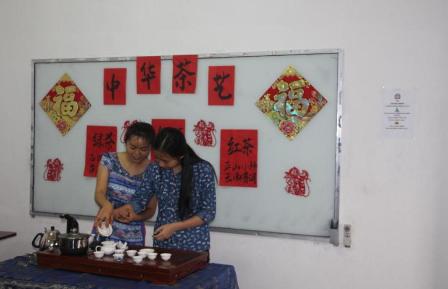 钟丹丹首先向学生们介绍了中国饮茶的历史,以及中国自古就有的以茶待客之道。随后又向学生介绍了中国的八大茶类及各种茶类的代表茶,如乌龙茶中的铁观音,红茶中的正山小种等。