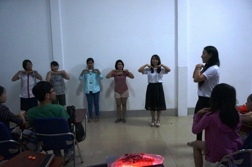 杨苏苏老师以一小段孔雀舞《有一个美丽的地方》开启了她的讲座,学生们看了以后觉得跟柬埔寨舞蹈还有一些共性,对讲座充满期待。杨老师用PPT、视频和动作示范的方法向大家介绍了中国民族舞蹈的相关情况,包括民族舞蹈的形成、民族舞蹈文化的类型,以及各种舞蹈的特点等等。学生们在了解了一些相关知识以后都跃跃欲试,踊跃参加民族舞蹈的学习和体验。