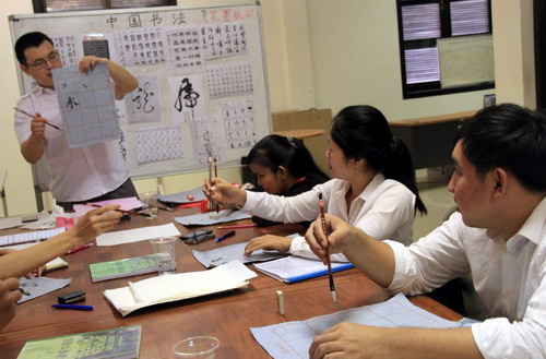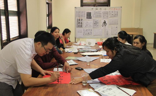 2月29日,柬埔寨王家研究院孔子学院暹粒省政府官员班举办“最美中华”系列活动之“中国书法”活动。此次活动的主题为“书之美,书之韵,书之神”。