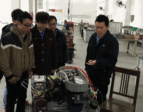毕业设计企业指导教师、公司质量部主任龚根平带领同学们参观了燃烧器车间。为了让大家更加了解,龚主任请来了热能工程事业部刘太孝高工给同学们详细地讲解和演示陆用与水用燃烧器的结构与控制原理。刘高工希望同学们通过学习吸收、能够创新地对燃烧器提出优化的想法。
