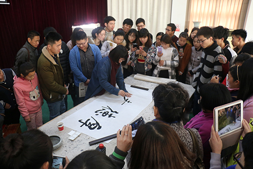 为了激励同学们热爱书法、学习书法,她为在场的师生每人赠送一本其书画作品集——《墨语华年》,听众纷纷请郭教授签名,不少书法爱好学生还就学书法过程中遇到的问题请教郭教授指点。讲座受到师生的广泛好评。