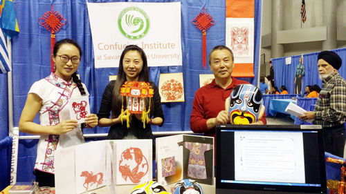 萨凡纳州立大学每年会在春、秋两季举办“校园开放日”活动,邀请全美的高中生和家长们来参观大学校园,并通过展台的方式让来参观的学生和家长们与各个院系和服务部门的老师沟通交流。孔子学院的老师们都会充分利用这样的机会向大学师生和社区居民推介孔院。