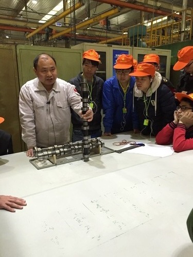 在各类车间技术人员的带领与讲解下,同学们实地参观了机修车间、凸凹模具、产品开发科、钢板弹簧、轴类车间、箱体车间、三环车身、dCill等车间,学习了磨锋、4H缸体、轴类生产、发动机生产加工、车身生产加工和各个零部件生产的技术指标、工艺流程、装配等环节,实践内容丰富而详实。同学们认真地记录了生产实践的内容,并就实习过程中的疑问向师傅们进行了请教,技术人员们耐心地以实物和实际生产环节进行了详细讲解。