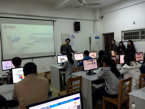 3月23日下午,江西福泰欣科技有限公司常务副总经理顾新明及其公司采购部经理为创业团队学生们开展了淘宝创业现场培训讲座。培训讲座上,顾总经理及采购部经理首先从福泰欣公司发展史出发,介绍了老北京布鞋的形成历史以及现代改良布鞋的市场现状。随后他们从产品的角度出发,详细的介绍了福泰欣公司所现有的产品分类和产品特性。并结合市场现状正确的引导学生们选择合适的系列产品。